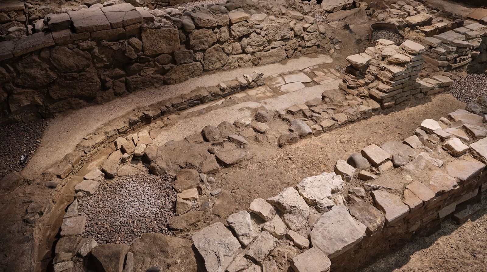 Muros de opus quadratum (sillares) de finales del siglo I d. C. que podrían corresponder a la fachada de la casa del complejo localizado en este yacimiento, en la zona de acceso donde el dominus (propietario) recibía a los visitantes.