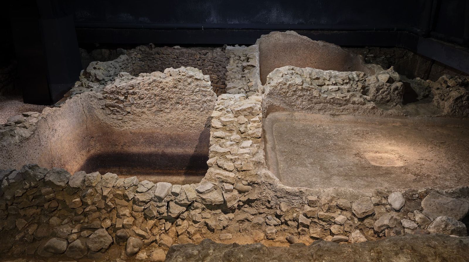 Batería de cuatro piletas para la producción de conservas de pescado que formaba parte del espacio productivo del complejo a finales del siglo I. d. C.
